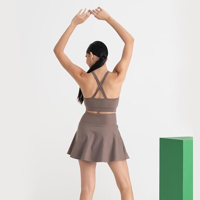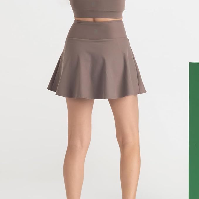 • Flared Skort Design: The flared cut gives you extra freedom of movement, making it ideal for dynamic sports like tennis, running, or cycling, while providing a flattering look.
