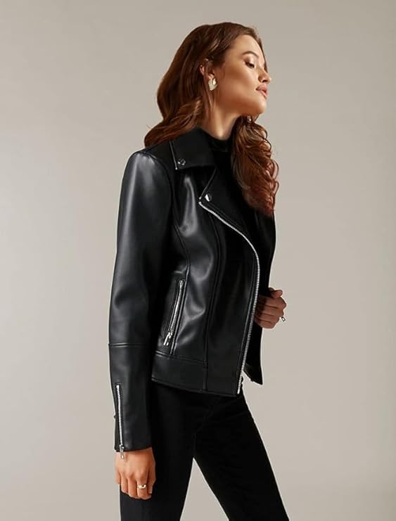 • Unleash your inner edge with this chic Biker Black Jacket for Women. Crafted for style and functionality, this wardrobe staple is perfect for every occasion where boldness meets elegance.