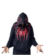 Men’s Cotton Spiderman Full Zipped Hoodies Trendy and Comfortable (Black & Red)