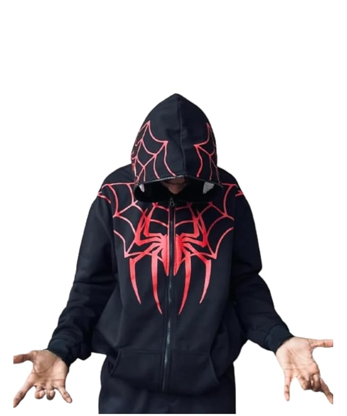 Home Hoodies Men’s Cotton Spiderman Full Zipped Hoodies Trendy and Comfortable (Black & Red)