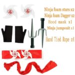 – **Accessories**: Includes a hood, mask, and foam weapons like a katana and throwing stars for safe, imaginative play.