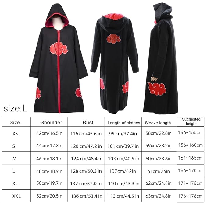 This costume is perfect for anime conventions, cosplay events, themed parties, or Halloween. It’s designed to be unisex and available in various sizes to fit both men and women. The attention to detail, such as the iconic Akatsuki red cloud symbols, makes it a favorite among *Naruto* fans aiming to embody the mysterious and powerful Itachi Uchiha or any Akatsuki member.