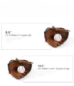 Home Baseball Gloves PU Synthetic Baseball and Softball Glove – Brown – 9.5 Inch